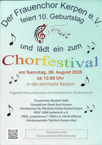 Der Frauenchor Kerpen besteht seit 10 Jahren und lädt zum Chorfestival ein. Wir feiern mit.